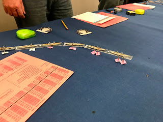 This past Saturday we played the third game of our 2019 Ghost Archipelago Campaign. We had 8 of our 9 regular players in attendance; which meant we had 4 Central Treasures in play, spaced evenly down the center of the 9'x3' table.